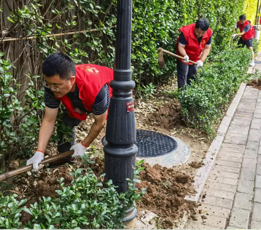 銀豐物業(yè)共產(chǎn)黨員服務隊義務勞動“扮靚”銀豐花園